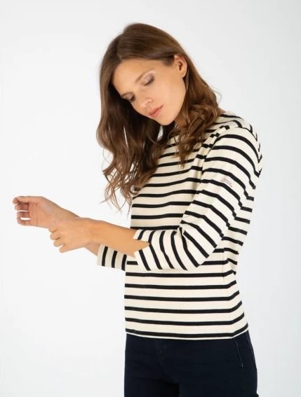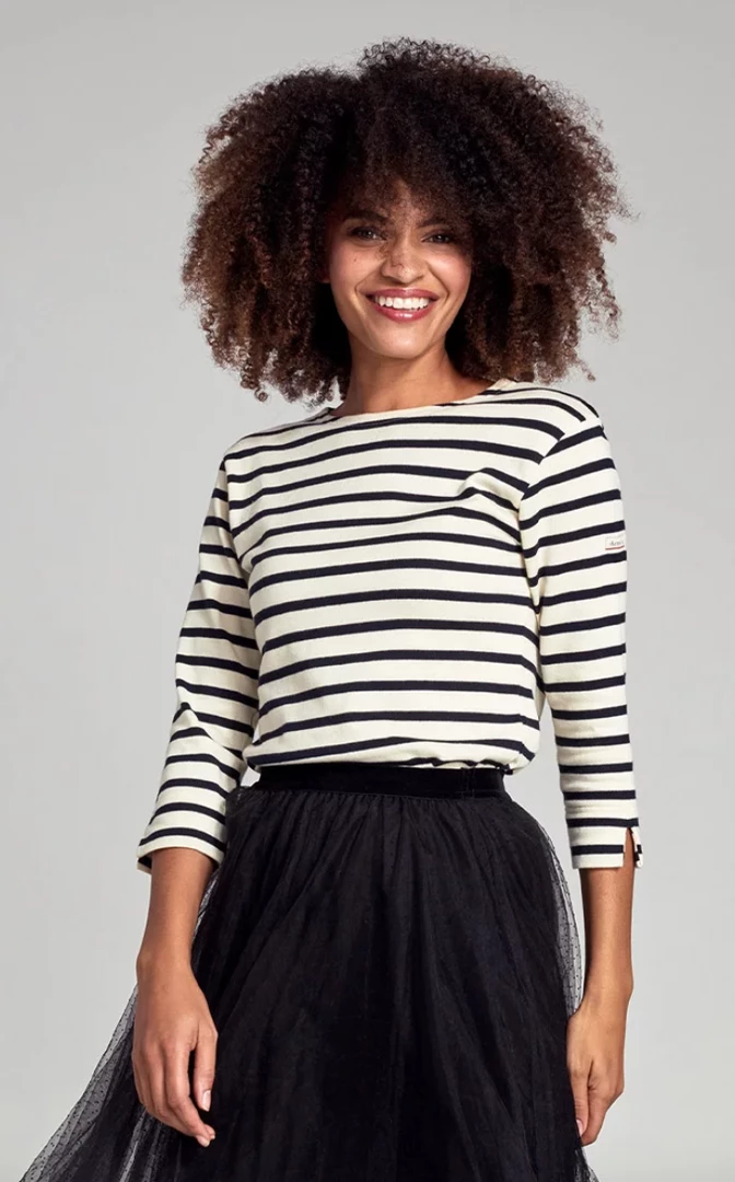The most classic of the French stripes, done right in a soft rustic cotton jersey. A tad longer than 3/4 sleeve length, Armor Lux logo on left sleeve.