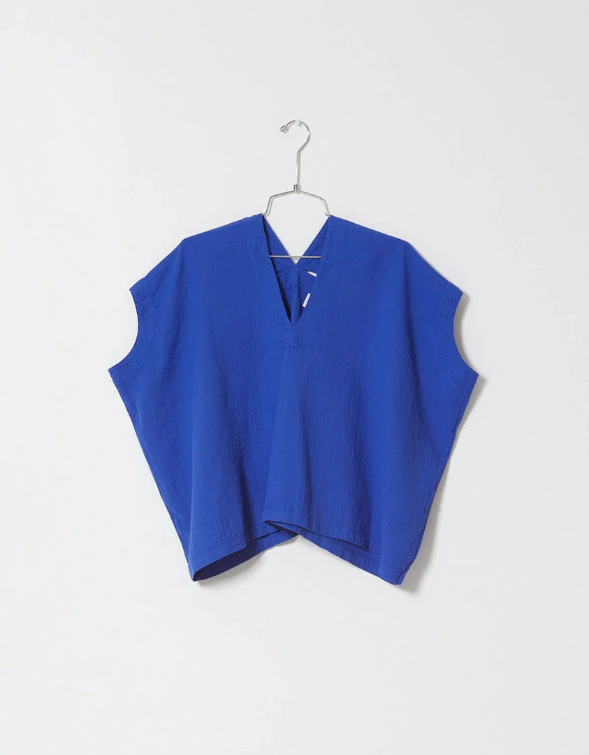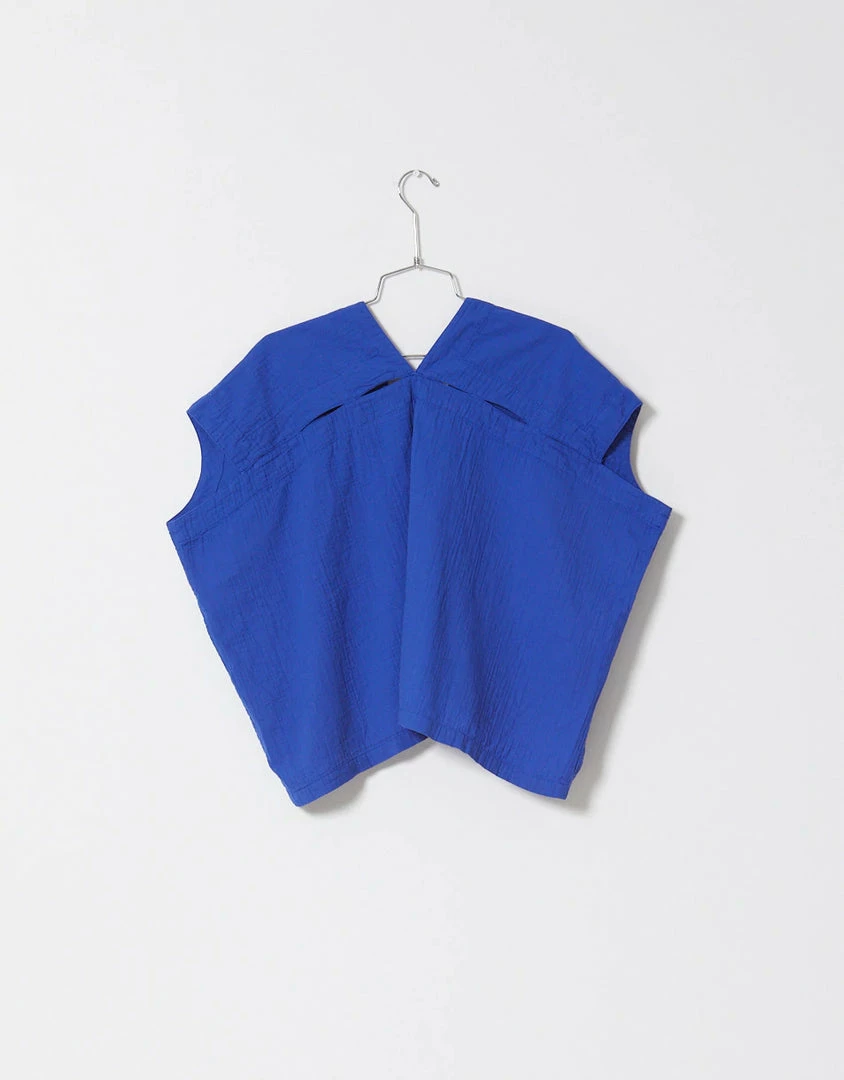 A lightweight crinkle cotton gauze top, relaxed boxy fit, open crescent details on the back (although can be worn reversed)