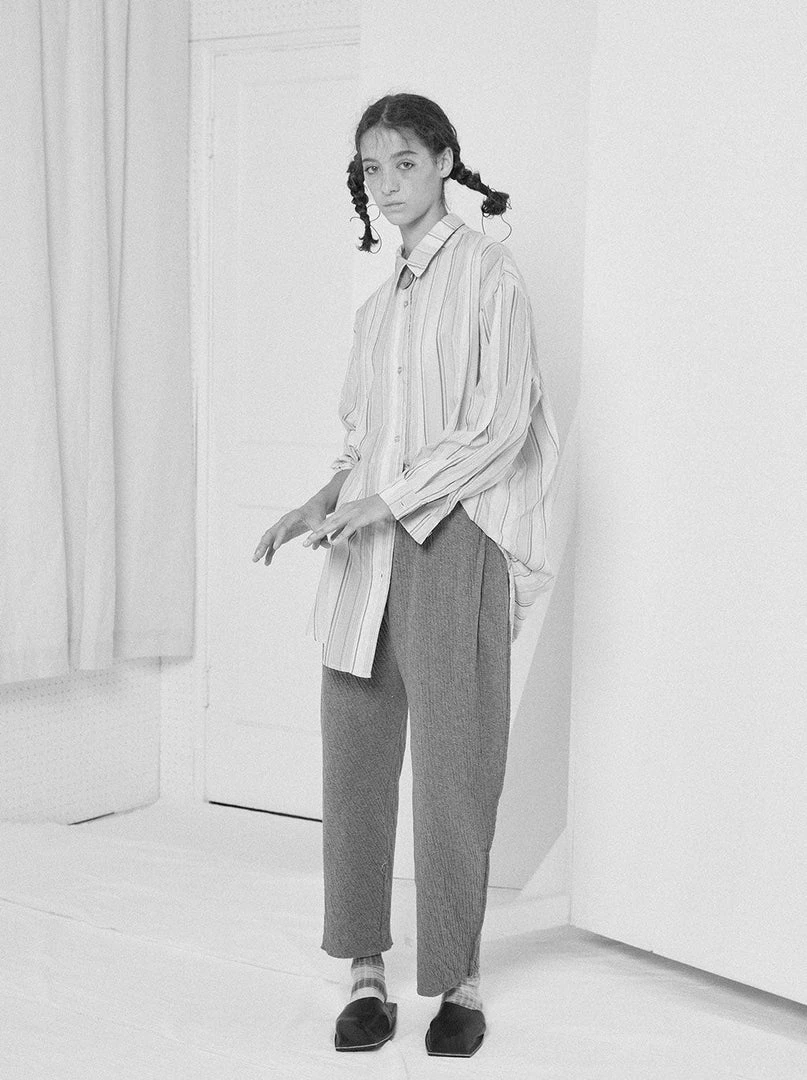 A super soft double layer textured cotton full length pant with an elastic waist, drop crotch, can be worn high or low on the waist, side hand pockets, raw cut hem and exterior exposed seams