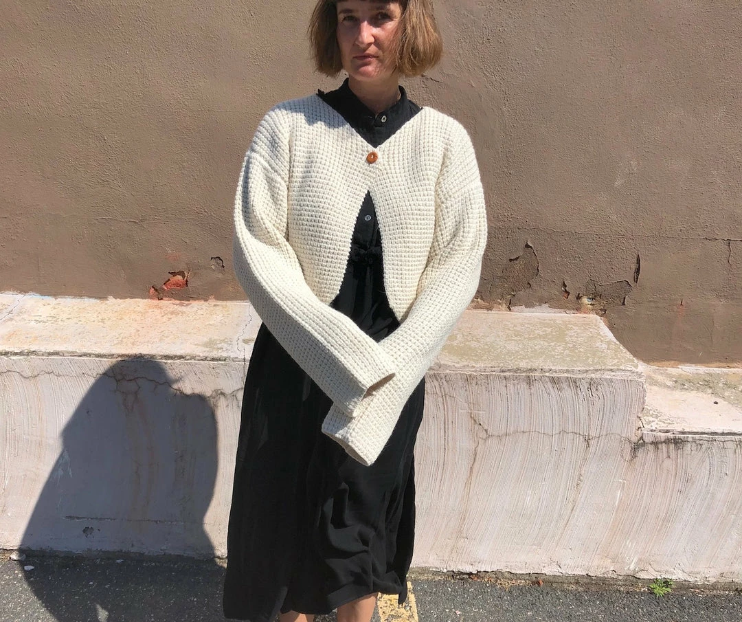 A soft top-button style cardigan jacket, with a luxurious knit that has a nice stretch & bounce to it