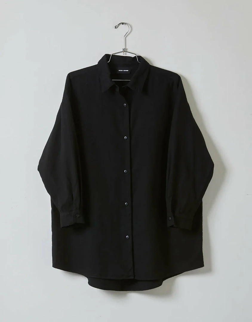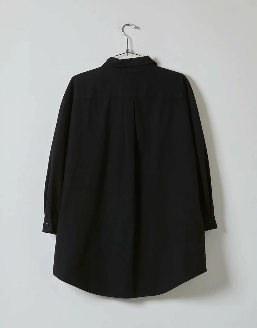 A long relaxed fit shirt that lands below the hip, made of a lightweight soft no-pilling Japanese cotton flannel