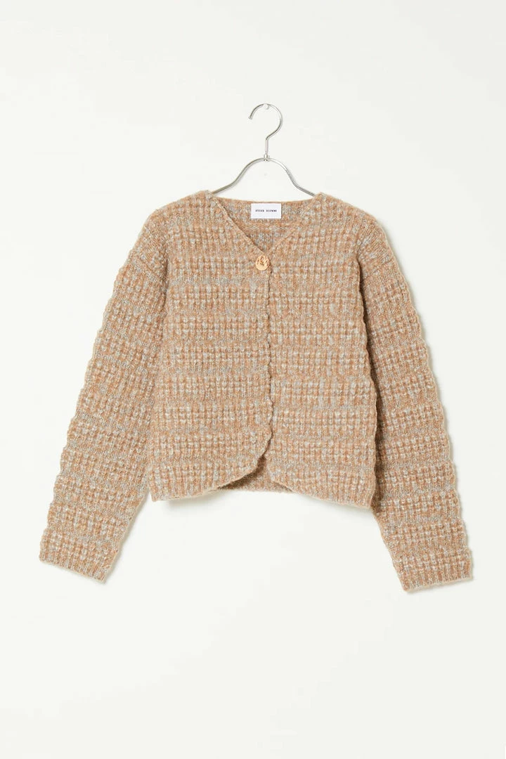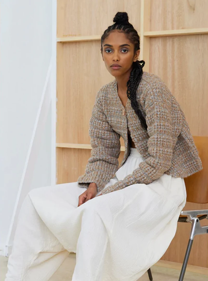 A heavyweight single button closure cardigan with a slightly cropped bodyΒ