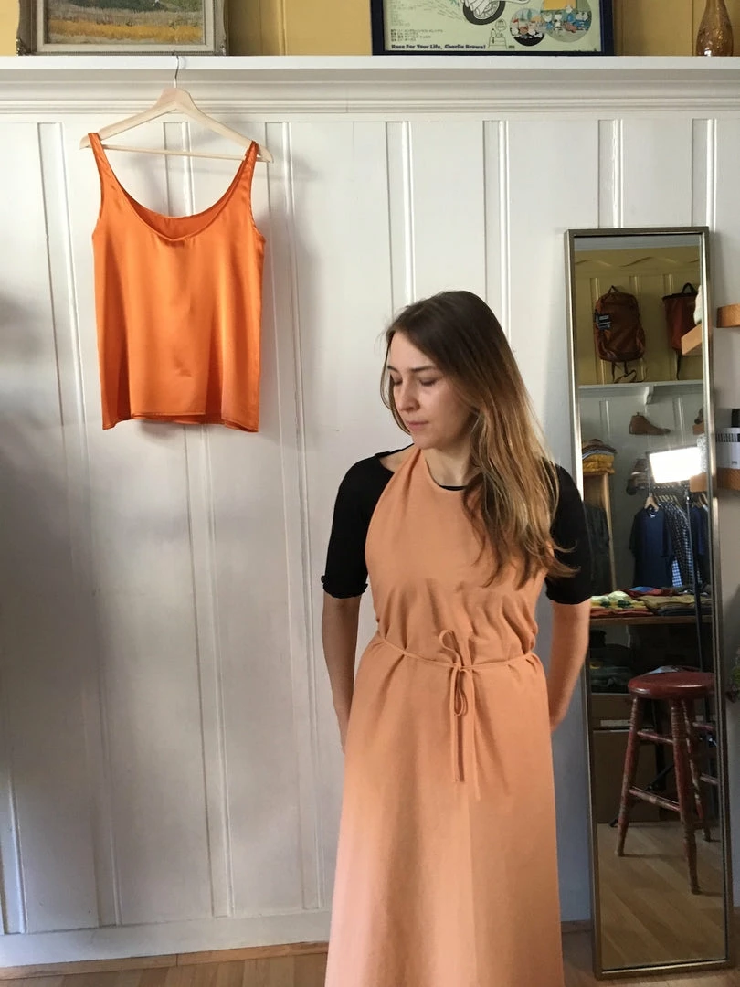 An easy and versatile wrap apron dress that can be worn on it’s own or layered over other pieces