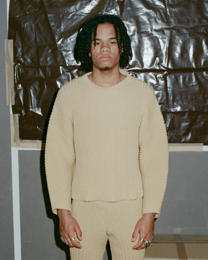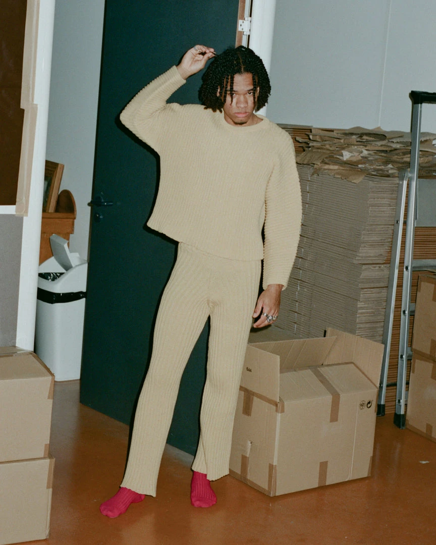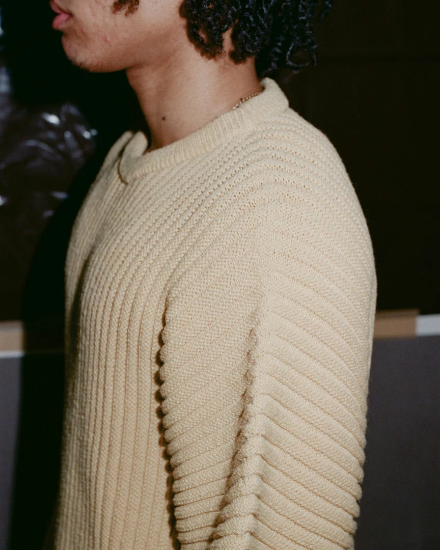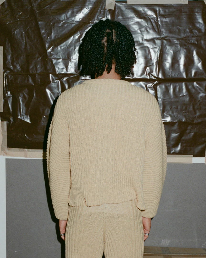 A recycled wool chunky rib sweater in an attractive relaxed fit cut