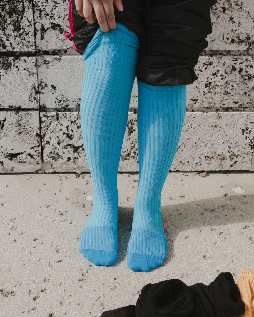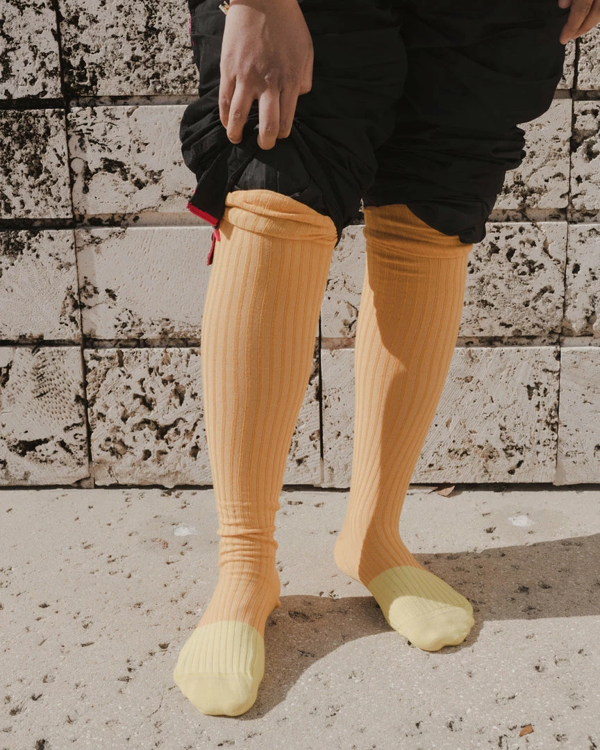 Baserange’s coveted over the knee sock in a special color block collaboration with Patou