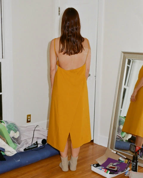 The favorite Yumi wrap apron dress in a new color and wool/silk blend