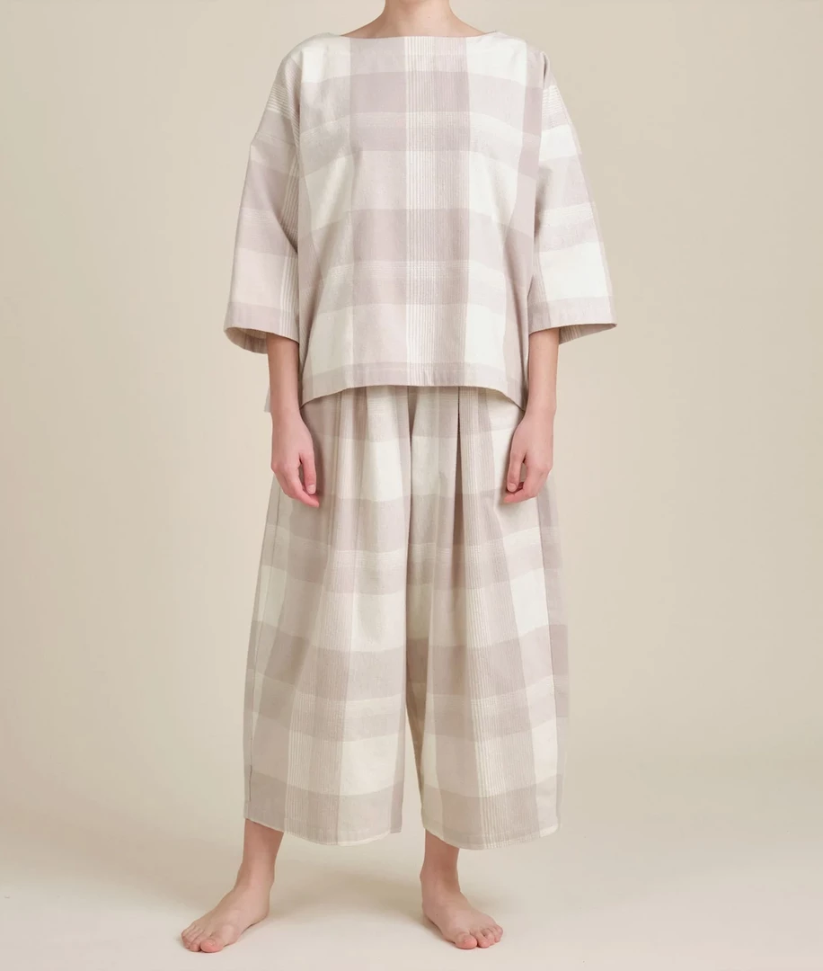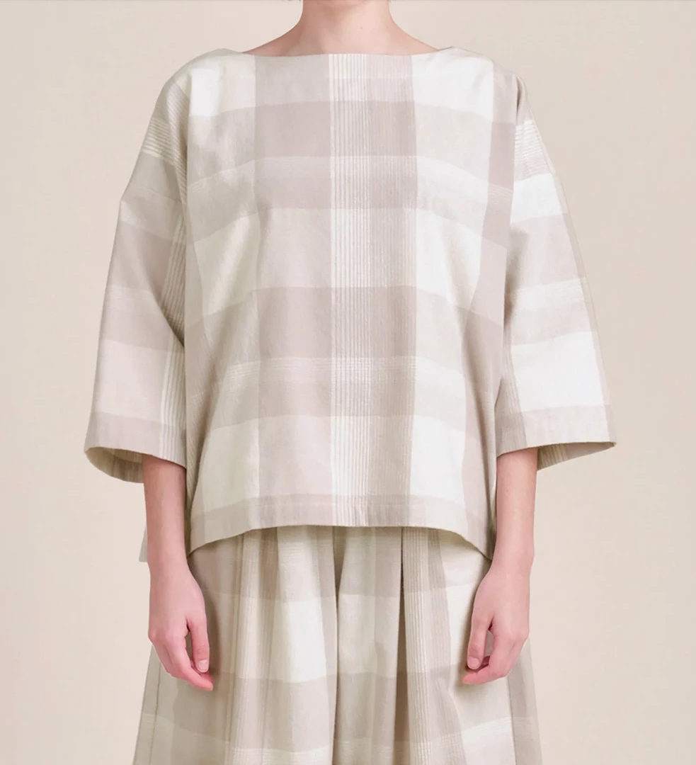 A soft relaxed fit cotton flannel pullover with a drop shoulder & boat neck