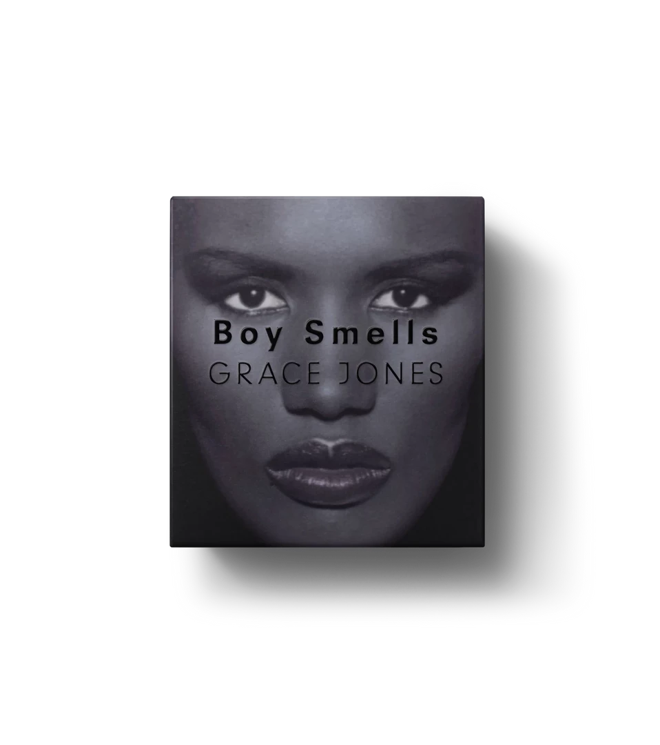 A dyed coconut & beeswax candle with a cotton braided wick in a matte gradient glass tumbler. Comes in an embossed Grace Jones image box.