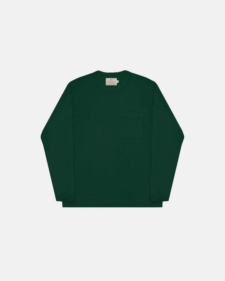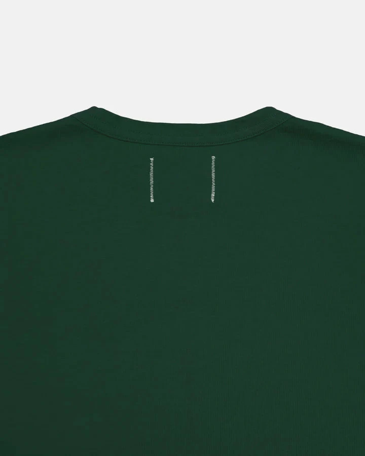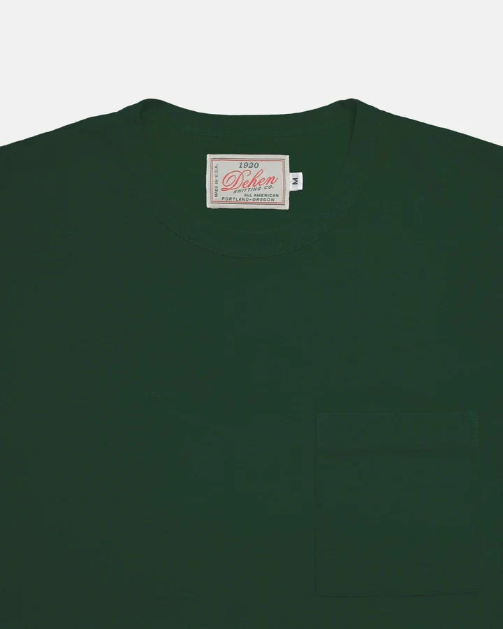 A 5.6oz jersey knit tee, self-bound neck, single chest pocket, blind stitched sleeves and hem & pocket, accent zig-zag stitch on label