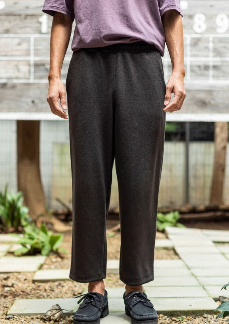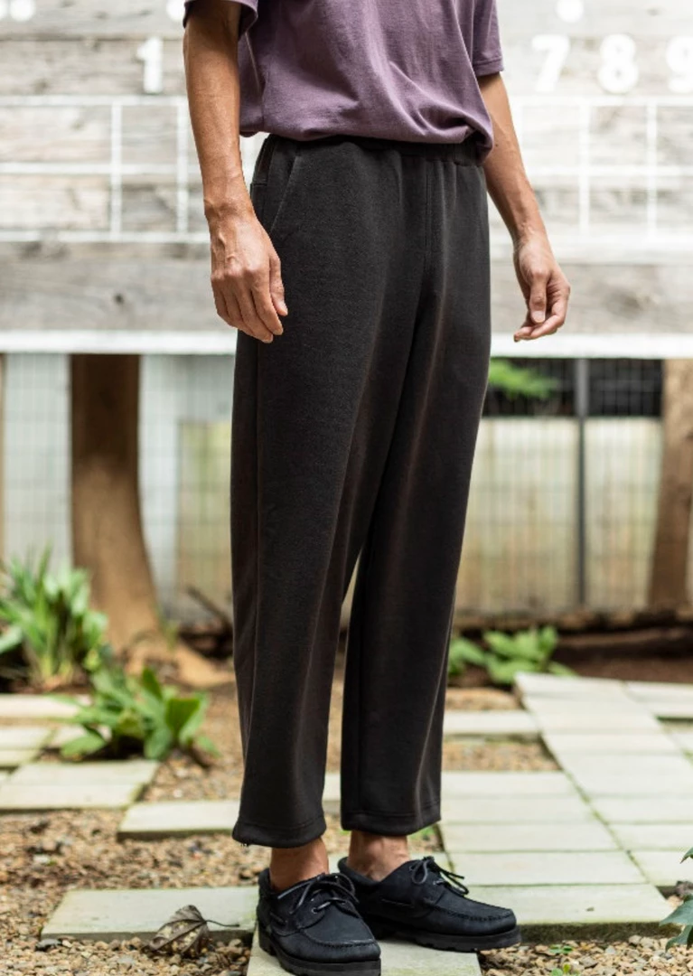 A unique cotton knit fabric with a soft and lightweight feel, high elasticity, won’t lose it’s shape. In the color of “ink black” which has the slightest fade-to-brown appearance like a dried black ink.