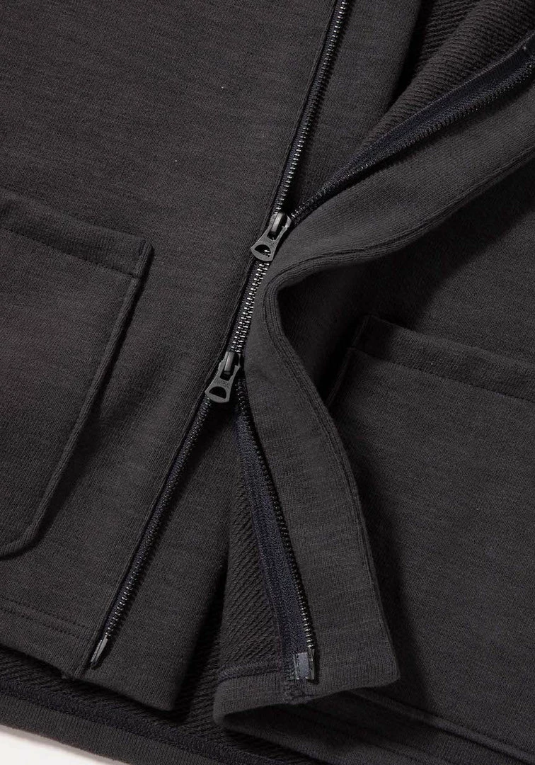 A heavyweight sweat cardigan with a sharp concealed 2-way zip front, and 2 front pockets.