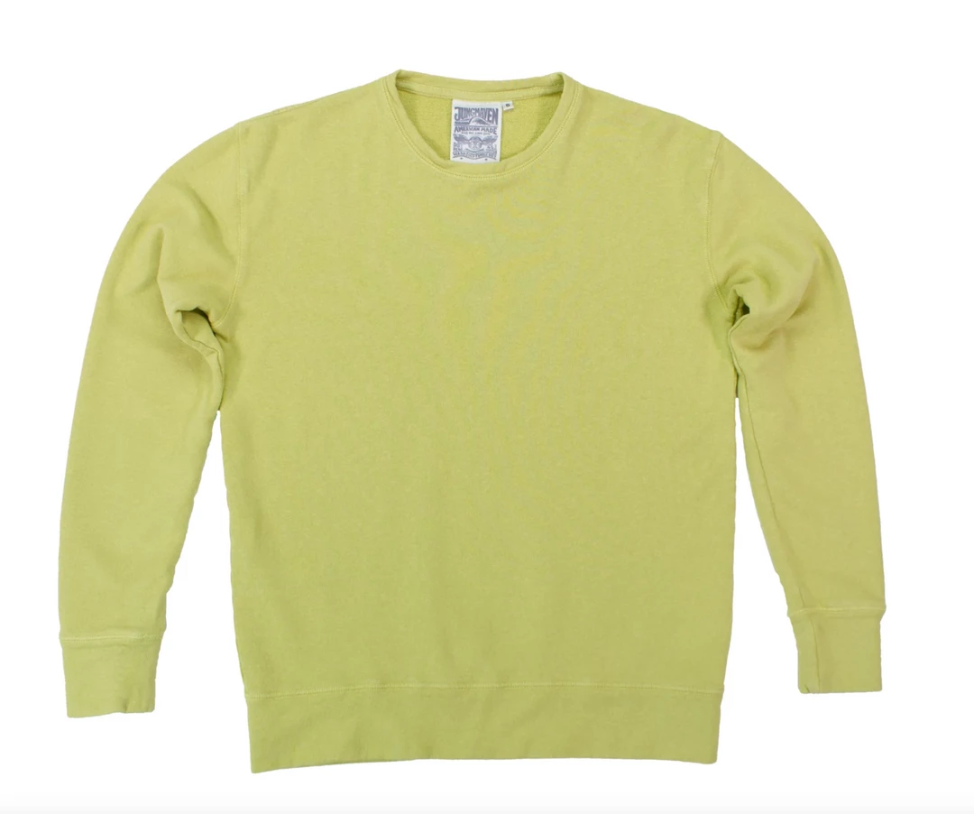 A medium weight sweatshirt with a micro french terry interior and a nice drape. Slight drop shoulder, crewneck.