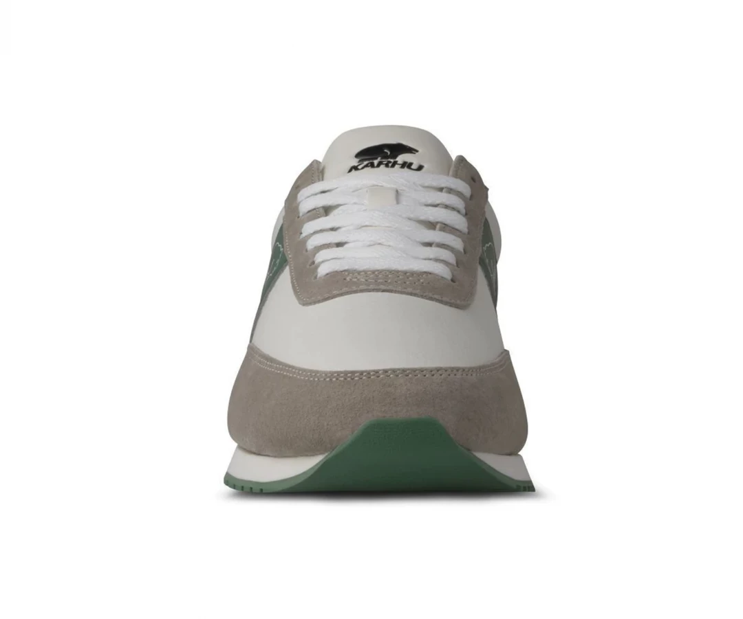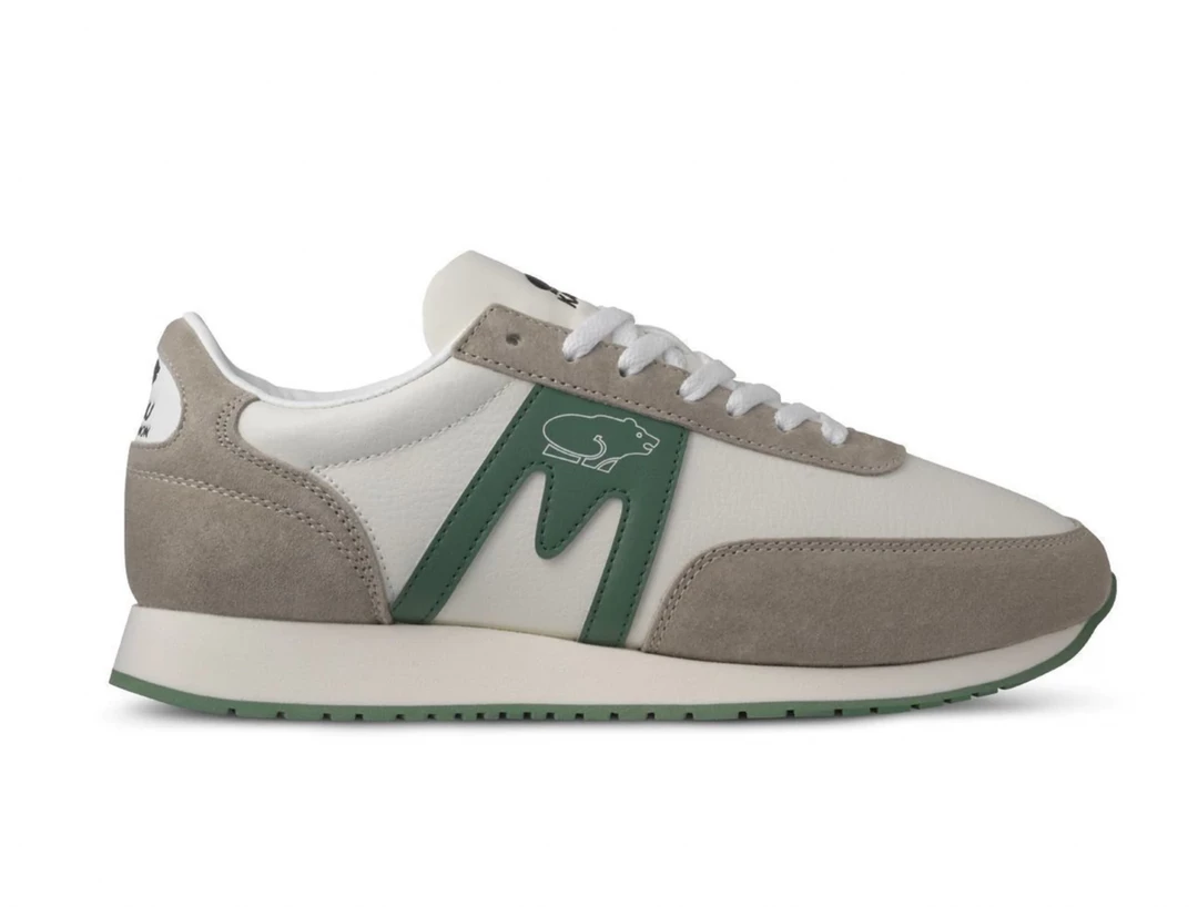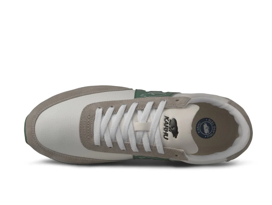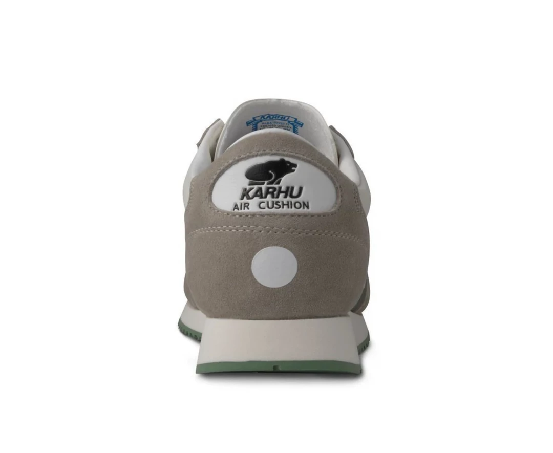 A lightweight sneaker with a grained leather base and suede overlay. Foam footbed with arch support. Air cushion.
