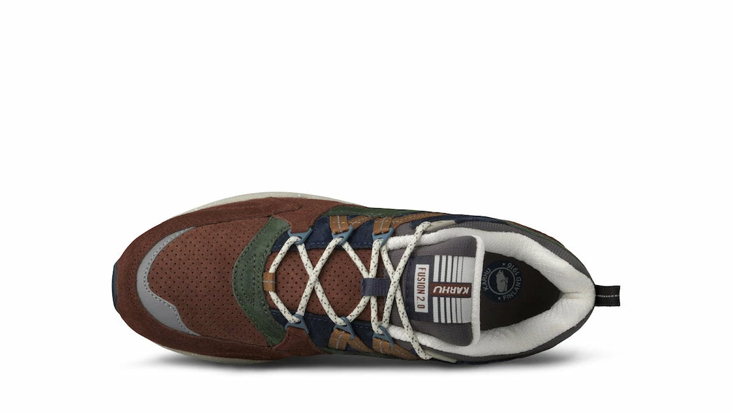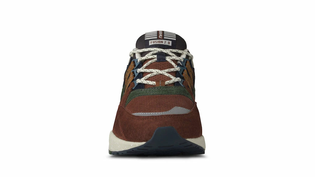 Karhu’s popular Fusion 2.0 model in a rich brown/green/blue colorway for the Outdoor Pack releaseΒ