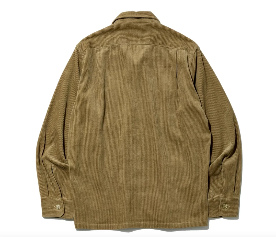 An 8-wale corduroy shirt with a true-to-size boxy cut, perfect overshirt that dresses up like a blazer without being a blazer. 5 pockets on the front, bottom hem side seam slits, back shoulder pleats for comfort and movability, button front and button cuffs