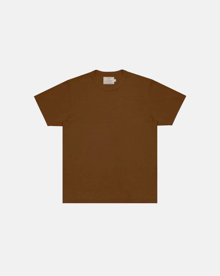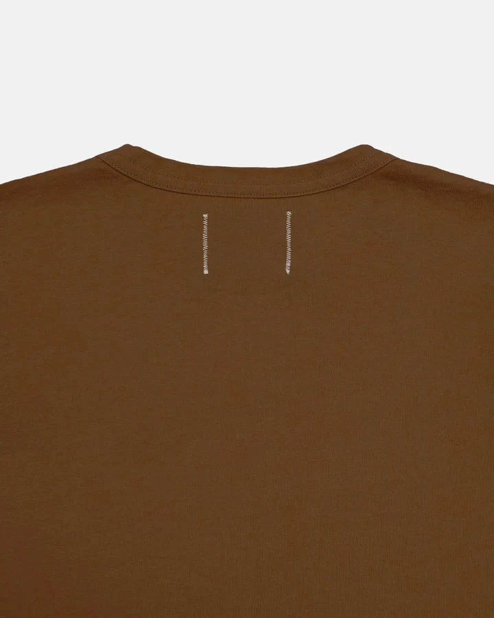 A 5.6oz jersey knit tee, self-bound neck, blind stitched sleeves and hem, accent zig-zag stitch on label