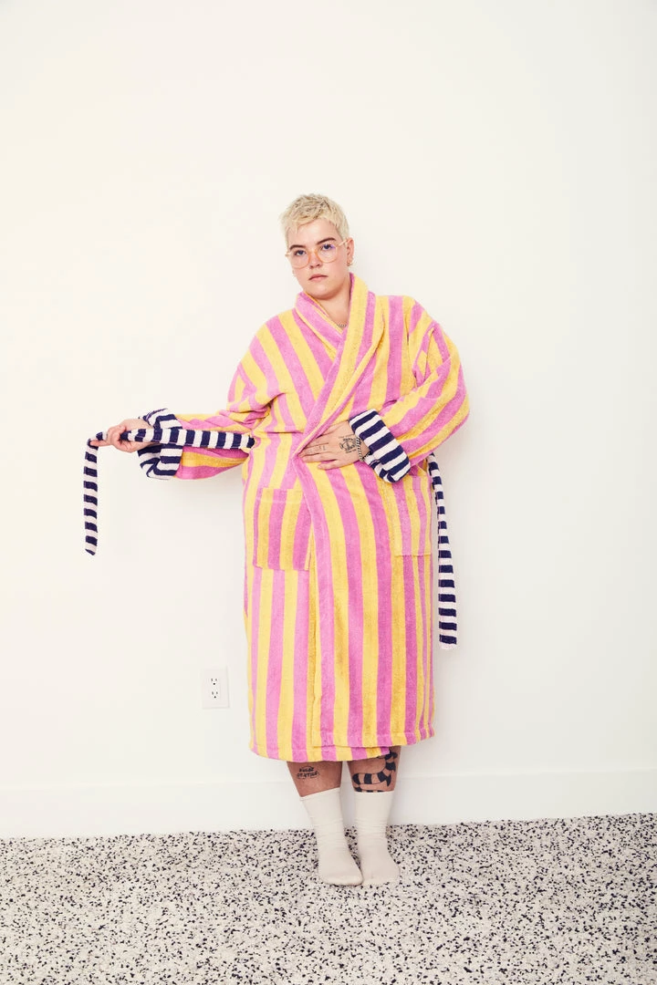 A cozy cotton terry bathrobe with a removable tie belt