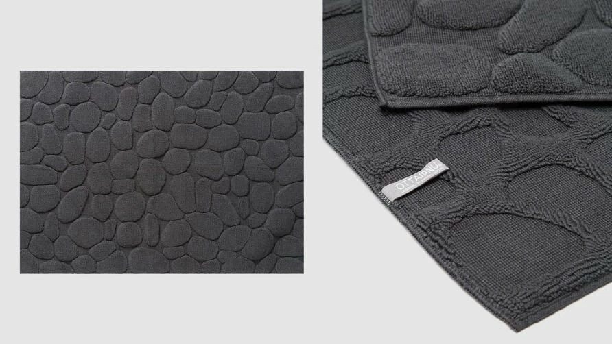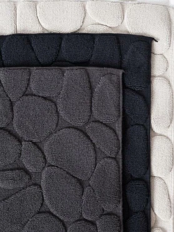 A padded textured cotton bath mat inspired by stone river beds
