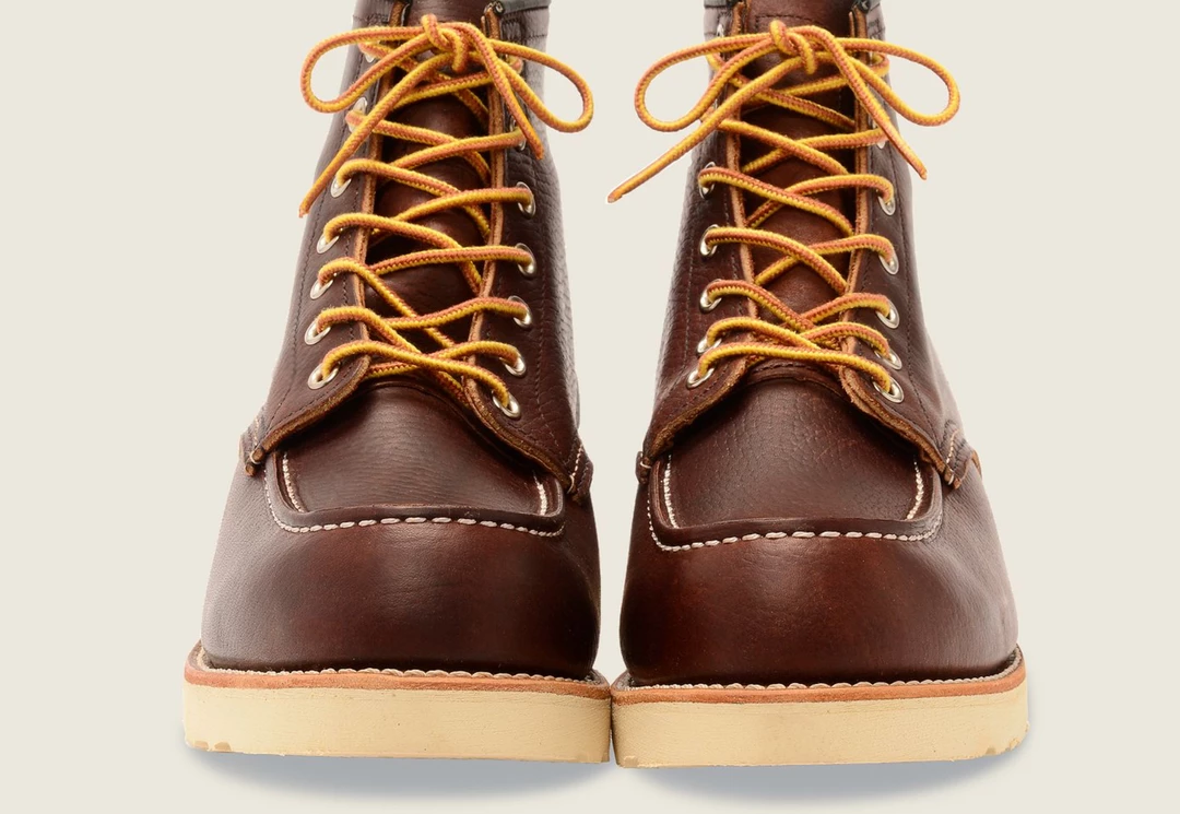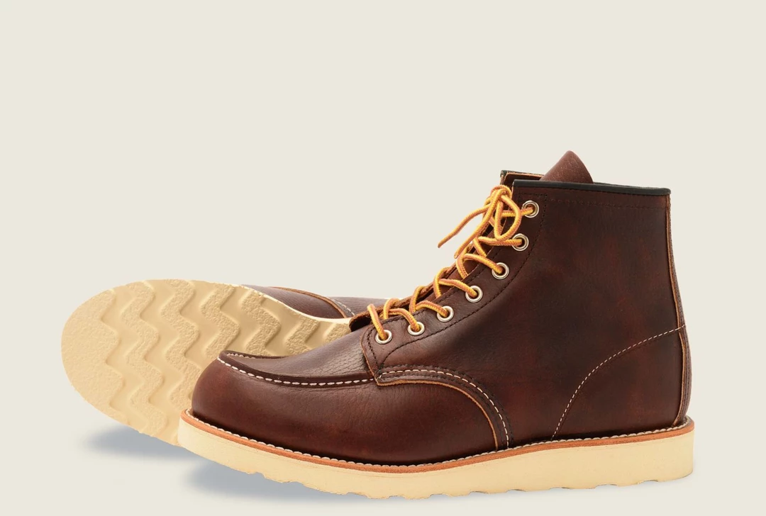 The classic Red Wing 6″ Moc Toe boot in a “Briar Oil Slick” leather upper, traction tread rubber sole with Goodyear welt construction (makes these re-soleable)Β