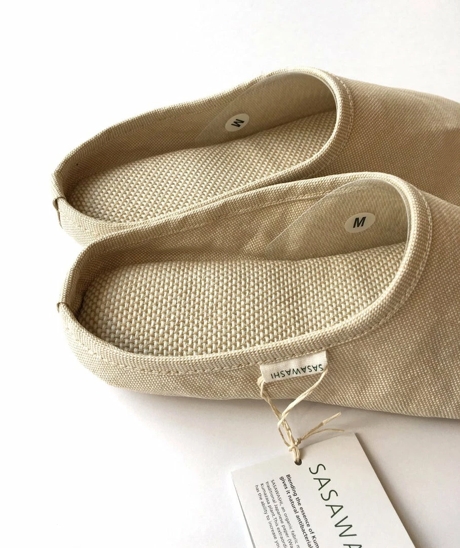 Sasawashi, an organic fabric made from the combination of traditional Japanese paper (Washi) and leaves of the Kumazasa plant. The material gives it a natural antibacterial and deodorant power.Β