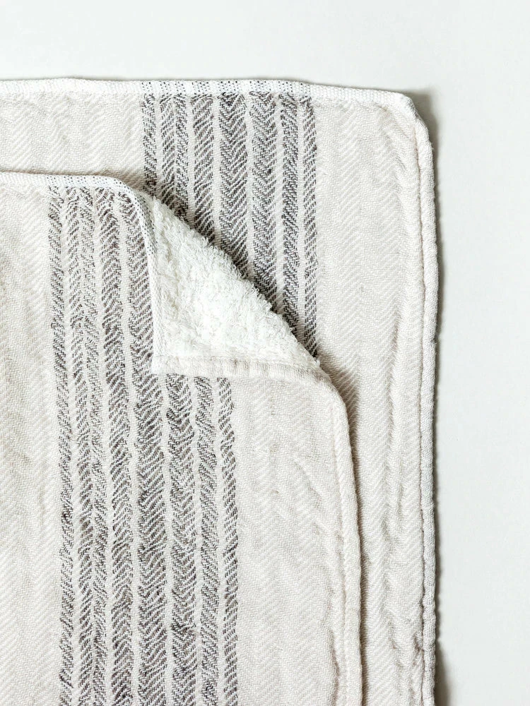 Gauze on one side, terry pile on other. Available in face/hand/bath sizes.