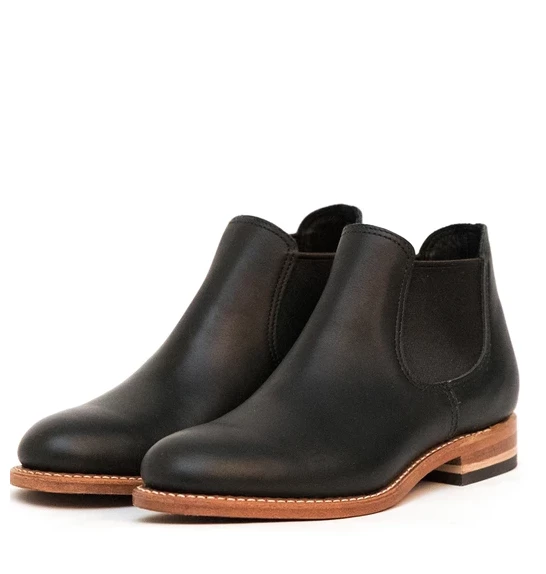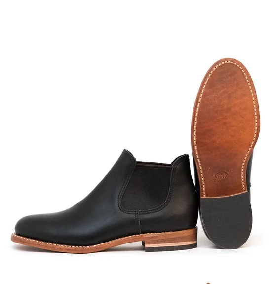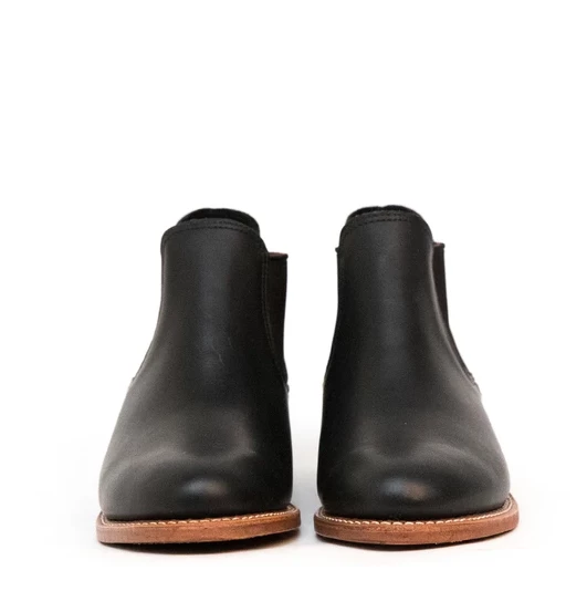 The Red Wing Carol is a dressed-up Chelsea Boot with a stacked leather heel and leather sole w/rubber heel for grip and shock absorption. Classic Red Wing Goodyear Welt construction. Easy slip-on boot/