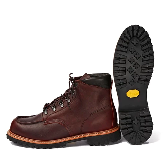 A 6β cold weather winterized boot with superior traction and moisture wicking insulation and a removable felt wool footbed. Briar oil-slick leather, Puritan triple-stitch construction, Vibram TC-4 Plus outsole for superior traction, soft deerskin collar for superior comfort.