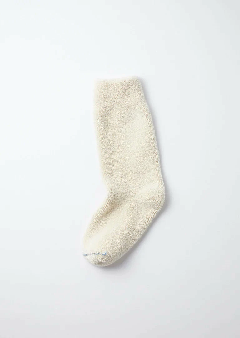 A thick soft sock well padded and insulated by it’s organic cotton loop interior