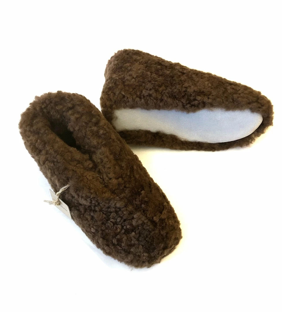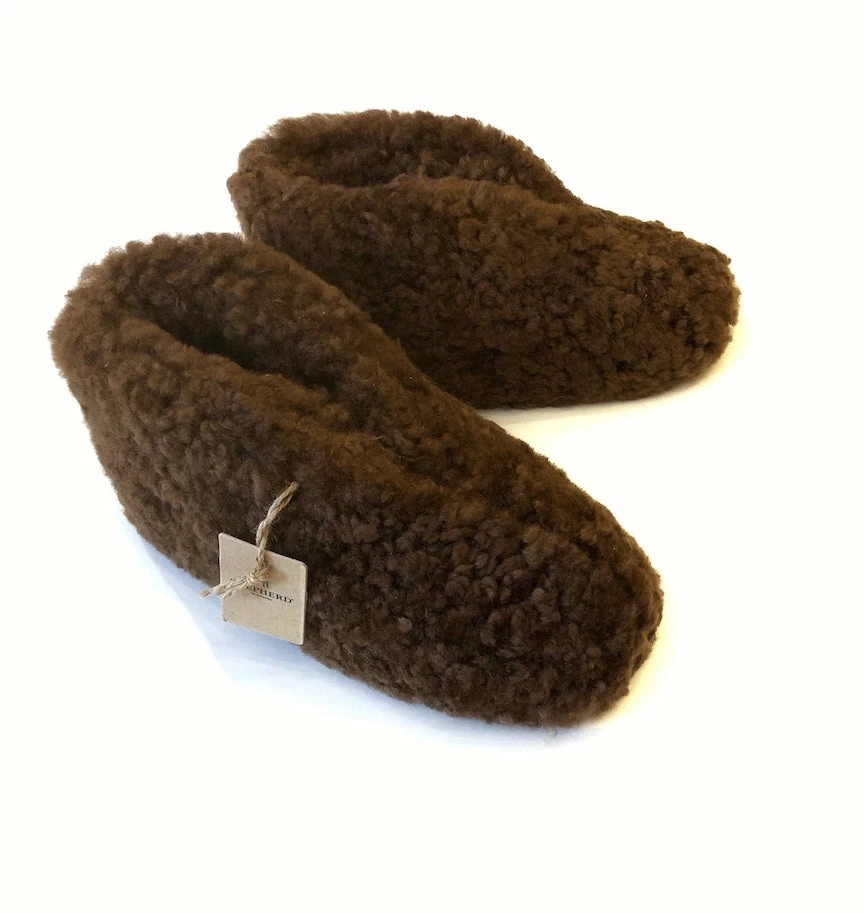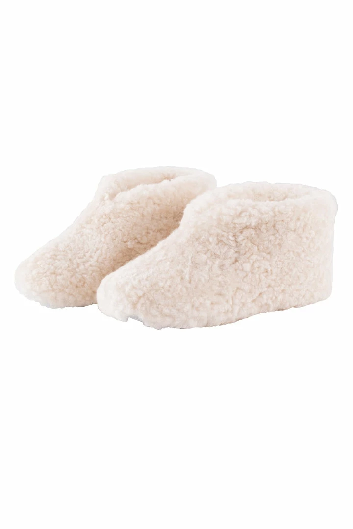 An all-over-fuzzy sheep wool slipper with a hard suede sole, ankle height, by Shepherd of Sweden