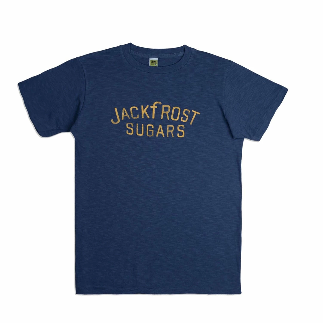 A soft cotton “tube tee” (no side-seams) with a “Jack Frost Sugars”Β graphicΒ