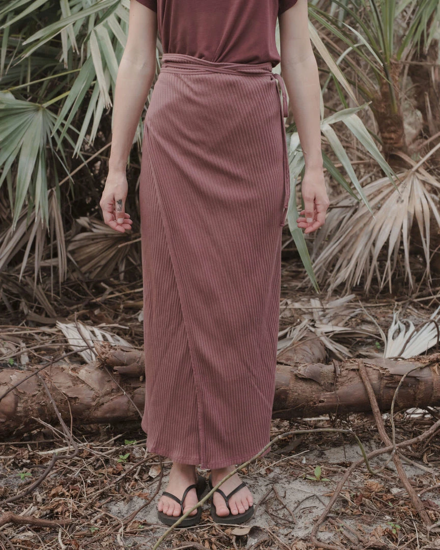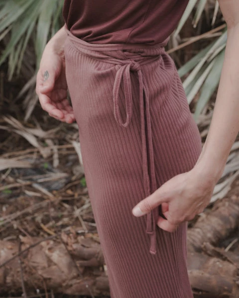 A soft cotton wrap shirt with a vertical rib