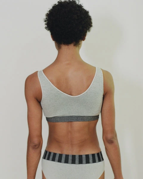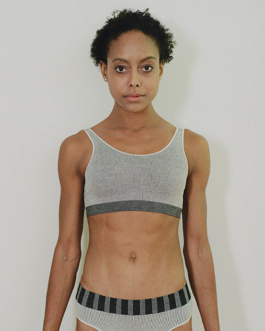A soft stretchy ribbed seamless sports bra. This “fine” seamless scoop top is a little bit of a lighter weight than the Baserane seamless U top we also carry.