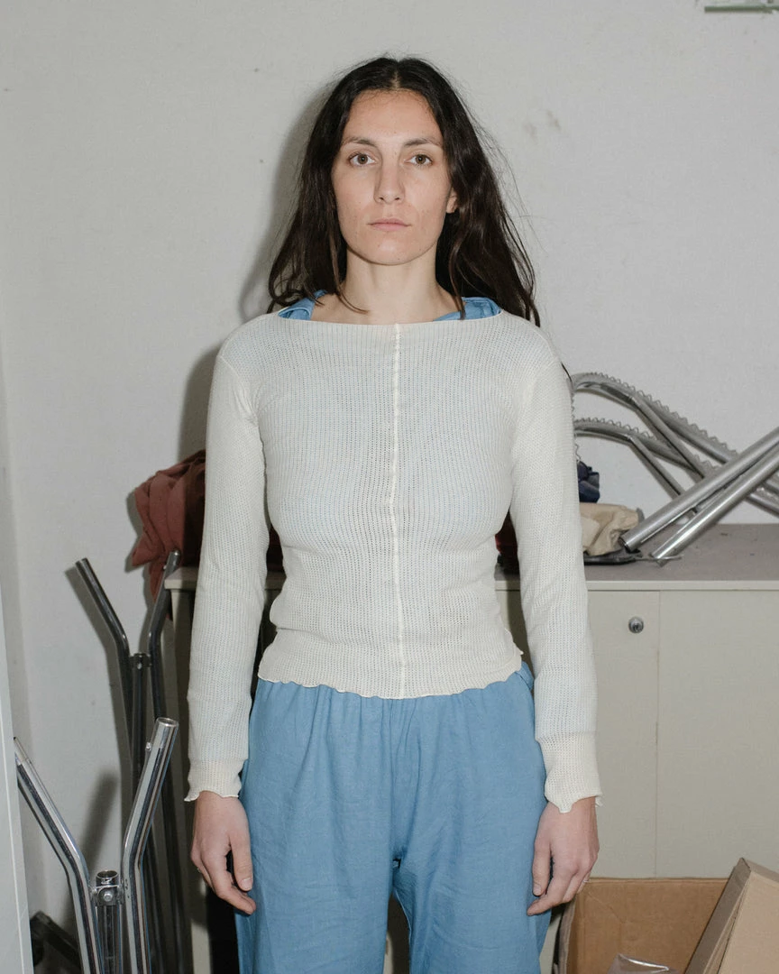 The classic Baserange Pama long sleeve with its center front & back seam in a new cotton waffle mesh fabric