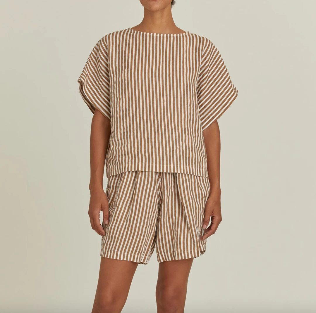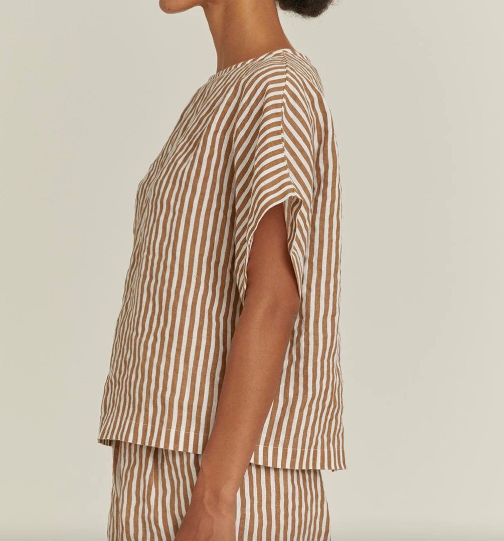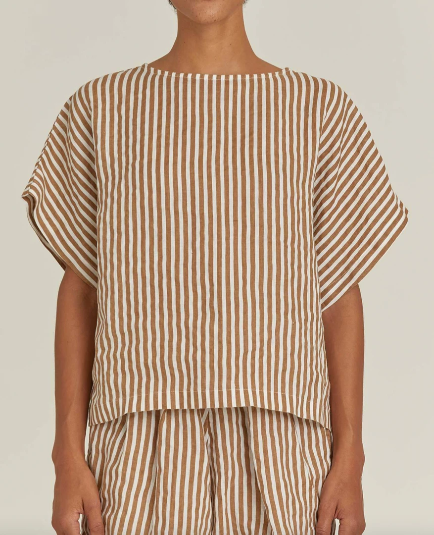 A wide crewneck top in a boxy cut and printed stripe pattern