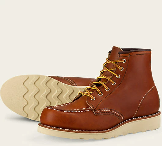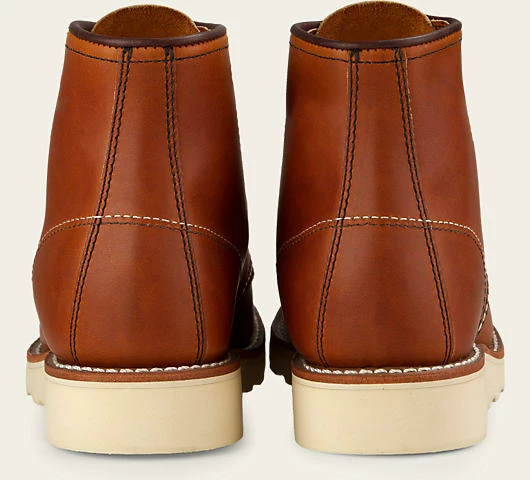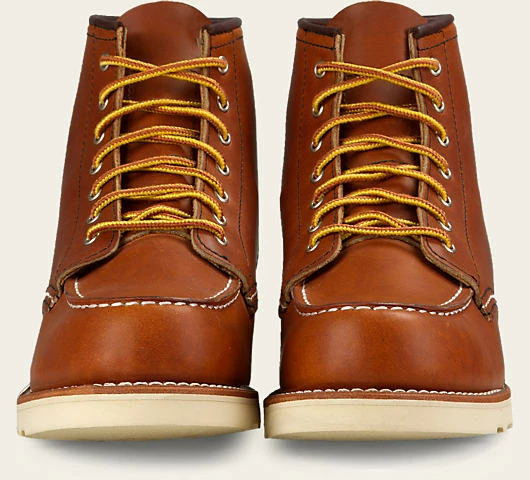 Red Wing’s iconic 6″ moc toe boot in the original red leather, polyurethane traction tred outsole, nickel eyelets, and a Goodyear welt construction which makes these boots re-soleable
