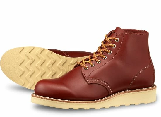 The 6β round toe model was introduced in 1919 making it one of Red Wingβs oldest models. This shoe offers the comfort of an oxford and the durability of a work boot. Goodyear welt along the sole. Red Wing polyurethane traction tread sole.