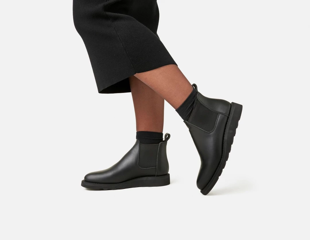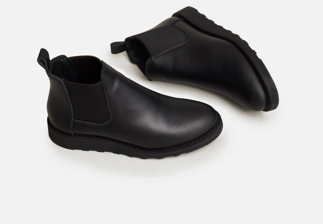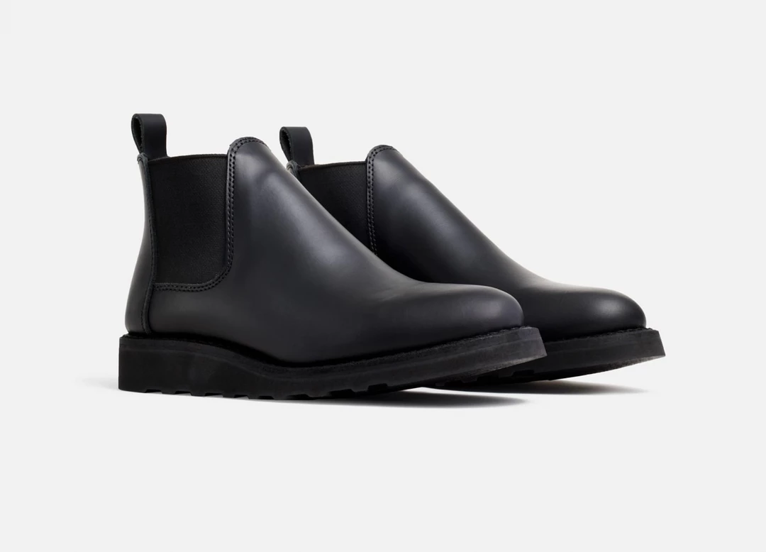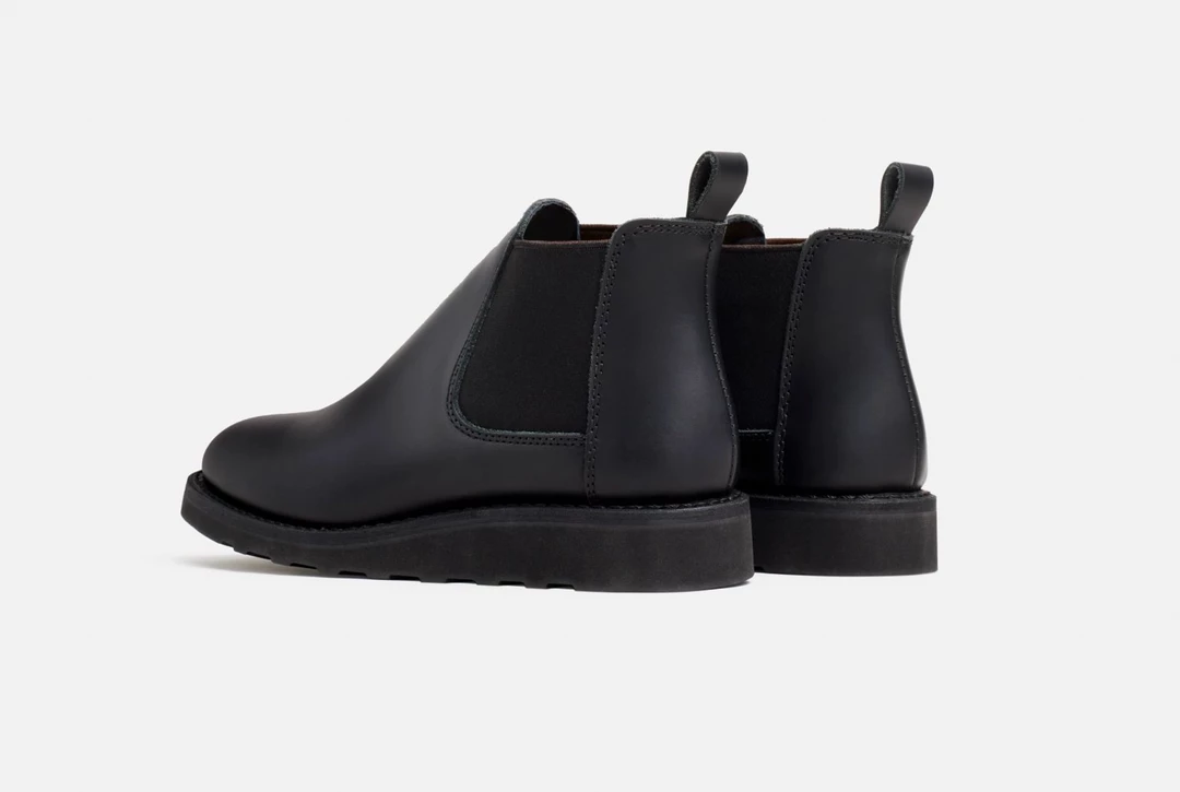 A Red Wing Chelsea boot with flexible side goring for a comfortable slip-on entry, leather upper, traction tread sole with a Goodyear welt construction.