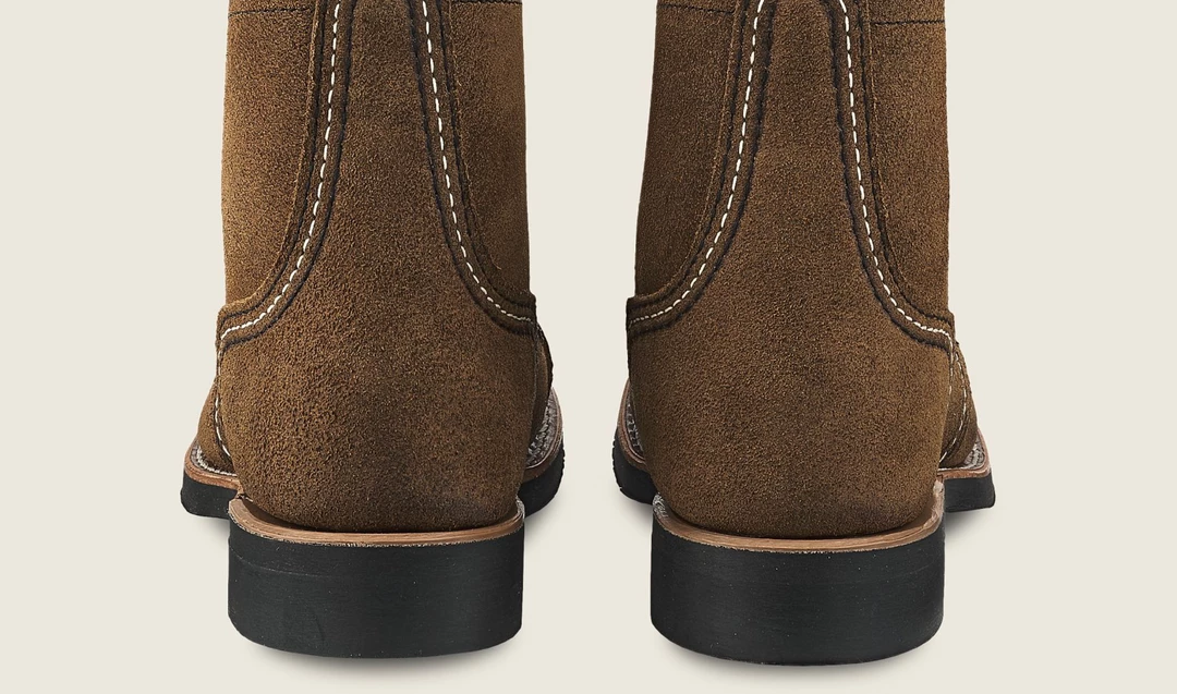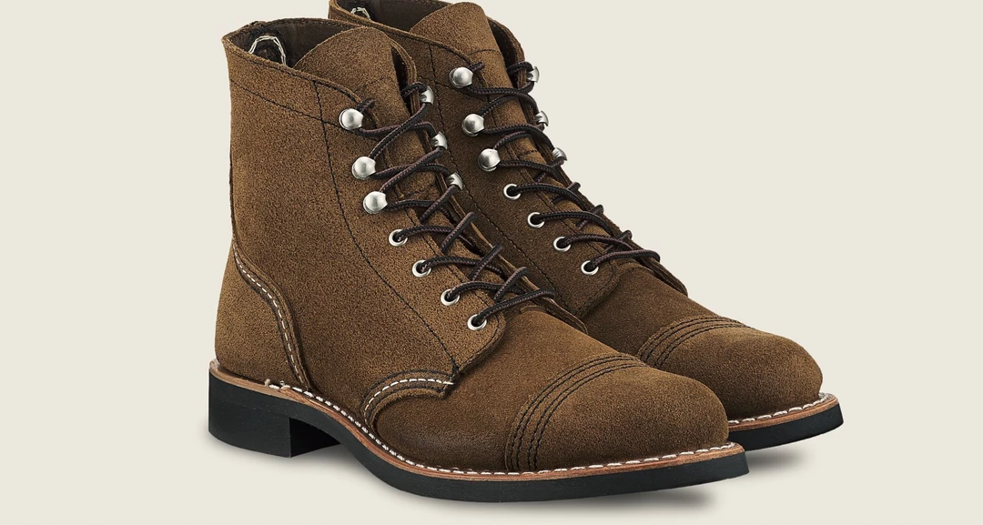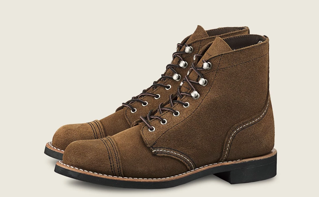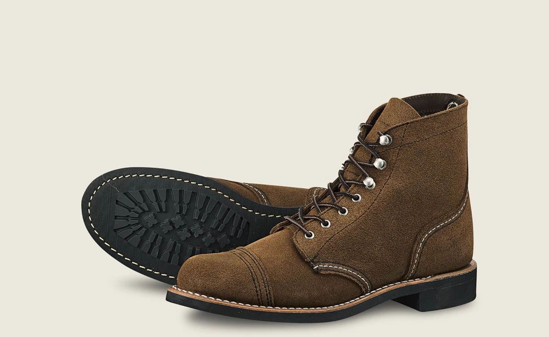 Red Wing’s classic 6″ Iron Ranger boot with a soft full grain “rough out” leather, double toe constriction, reinforced double leather heel, comfort Texon insole foot bed, outer sole Vibram 430 mini-lug sole, Puritan triple stitch boot. Goodyear welt construction makes these easy to have re-soled.Β